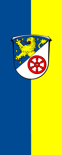 The arms are based upon those of the former Rheingau County. But the golden bunch of grapes there had been replaced by the lion of Nassau, here differentiated to a demi-lion. The upper field is also representing the former Untertaunus County. The wheel is representing the Bishopric of Mainz. The bishops had been rulers in the Rheingau since the 9th century for more than 400 years.