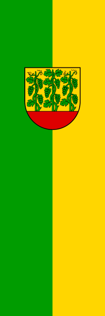 It is a green - yellow vertical bicolour. The coat of arms is shifted to the top.