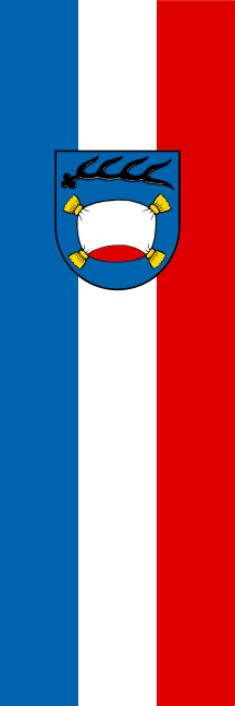 It is a blue - white - red vertical tricolour. The coat of arms is shifted to the top.