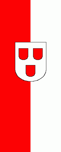 It is a red - white vertical bicolour. The coat of arms is shifted to the top.