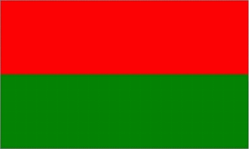 The ratio of flag is 3:5. It is a red over green horizontal bicolour.