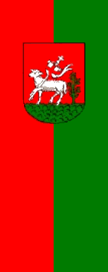 The ratio of flag is 3:5. It is a red over green horizontal bicolour with the coat of arms shifted to the hoist.