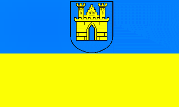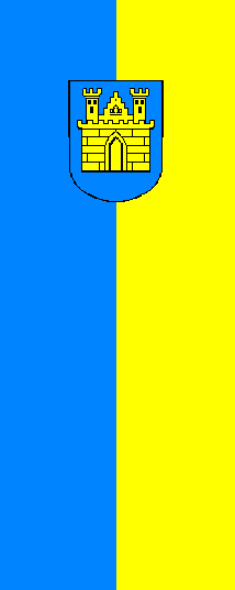 It is a blue and yellow vertical bicolour with the coat of arms shifted to the top.