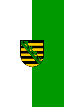 The state flag of Saxony is white on green and has the Arms in the middle.