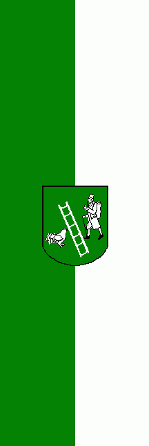 It is a green - white vertical bicolour. The coat of arms is in the centre of the banner.