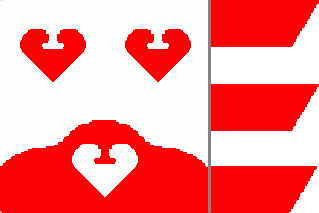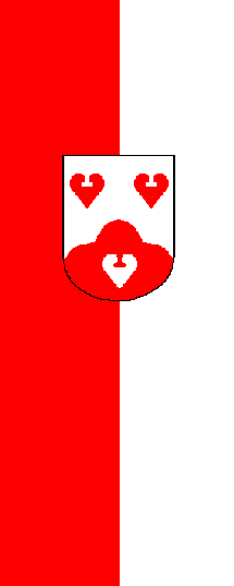 It is a red and white vertical bicolour with the coat of arms shifted