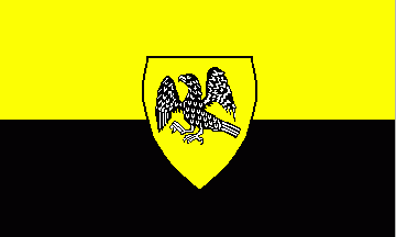It is a yellow - black vertical bicolour. The coat of arms is shifted to the top.