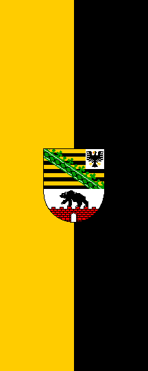 The Land flag is yellow on black. In the past it was black on yellow, but Saxony-Anhalt disappeared in 1952 (when East Germany abolished the States) and Baden-Württemberg, a newly created Land (in West Germany), adopted a black on gold (yellow) flag, so Saxony-Anhalt had to change the order of the colours when it resurrected in 1990. Proportions 3:5.