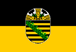 Horizontal bicolor black-yellow. Officially adopted 28 April 1884 as flag of the Prussian province Saxony. Used as flag of Saxony-Anhalt State [Land Sachsen-Anhalt] 1946-1952.