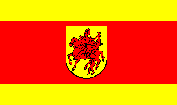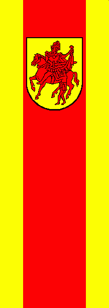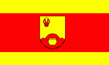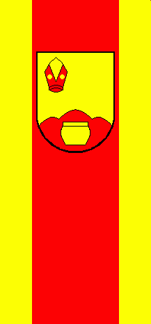 It is a yellow - red - yellow vertical triband with ratio 1:3:1. The coat of arms is shifted to the top.