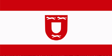 The flags ratio is 3:5. It is a red over white horizontal bicolour. The flag was used since 1351.