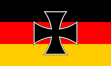 The first variant of the war minister's flag was introduced and indeed used, unlike the war ensign and jack with the decree of 27 September 1919. It was a black-red-gold tricolour with an Iron Cross in the center. Proportion 3:5. Sources: