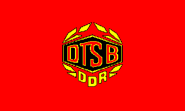 Günther 2000 shows a red flag with the same symbol. This makes some sense since the flags of most SED-influenced organizations (except for the youth organizations) were red. However, the flag I remember from sports events and demonstrations was white. At this webpage there are pictures of an East German sports festival. At the stadium entrance (picture here) are a national flag and a white DTSB flag.