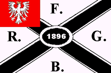 It is a white flag divided by a black cotized saltire. There are dotted black capital letters:"F" (top), "R" (hoist), "G" (flyend) and "B" (bottom).The flag has a red canton with the white eagle of