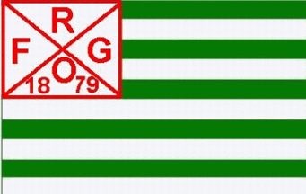 It is a white flag dicided by a red saltire. There are black capital letters: "F" (hoist), "R" (top), "V" (fly) and "1865"(bottom). The flag has a red canton with a white eagle from the coat of arms of the