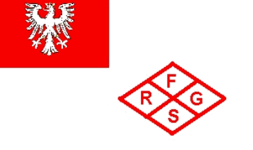 It is a white flag with a red canton showing the white eagle of Frankfurt. In the flyend there is a rhombus with red edges divided by a red saltire and red capital letters in its white parts: "F" (top), "R" (hoist), "G"(flyend) and "S" (bottom).