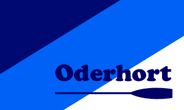 The flag is two times divided per bend sinister. The colours are, starting at the hoist dark blue (FIAV-Code B++)-blue(FIAV-Code B)-white. In the lower flyend is a dark blue inscription "Oderhort".