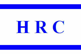 The white flag is divided by blue horizontal lines. Between the lines is a blue inscription "HRC".
