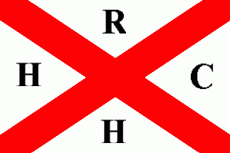 It is a white flag divided by a red saltire with black capital letters "H" (hoist),"R" (top),"C" (fly) and "H" (bottom).