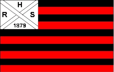one, The canton has black capital letters "H" (top),"R" (hoist),"S" (fly) and "1879" (bottom).