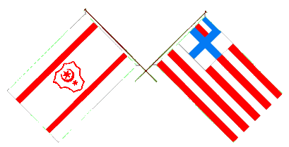 The white flag is divided by a red cotized saltire with black inscriptions on the white quarters as follows: "R"(hoist), "W"(top), "H"(fly) and "1929"(bottom).