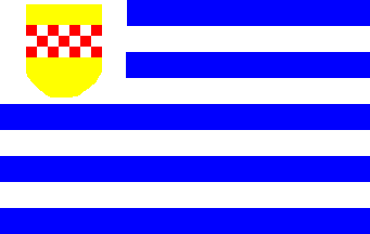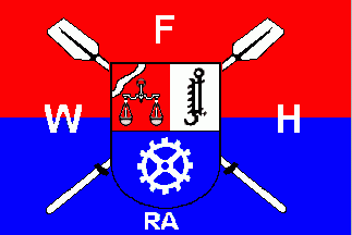 t is a red over blue horizontal bicolour. In its centre is the municpal coat of arms superimposing a pair of crossed oars. The whole is flanked by inscriptions "W" (hoist), "F" (top), "H" (fly) and a bit smaller "RA" (bottom). The colour of oars and letters is probably white.