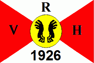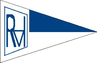 It is a white triangular blue over white pennant. At the hoist are blue letters "RVH", the "V" being half size between the lower parts of "H"-vertical bars. All is surrounded by a white trapezium with blue edges.