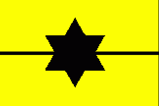 It is a yellow flag divided horizontally by a black line. In the centre of the flag is a black 6-point star.