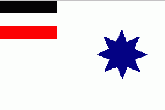 It is a plain white flag with a dark blue 8-point star in its centre.