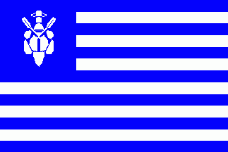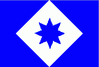 In the centre of the blue flag was a white diamond nearly touching the top- ansd bottom edge. In the diamond was a blue 8-point star.