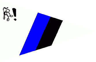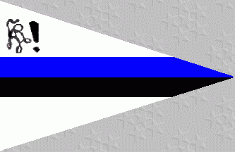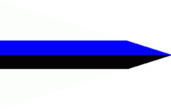 It is a white triangular pennant with a blue horizontal stripe over a black one in the middle of the flag.