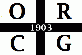 The white flag was divided by a black, centred cross. In the quarters were black initials as follows: "O" (upper hoist), "R" (upper fly), "V" (lower hoist) and "G" (lower fly). In the middle of the horizontal crossbar was a white inscription "1903".