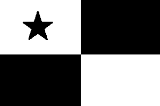 A quarterly divided flag into white and black with a black 5-point star in the upper hoist.
