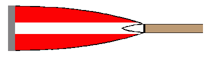 It is a red blade divided by a white horizontal stripe. Red and white are the colours of the flag.