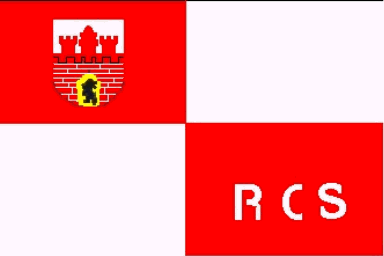 Description of flag: It is a quarterly divided red and white flag with white capital letters "RCS" in the lower fly and the coat of arms of the former city of Harburg in the upper hoist.