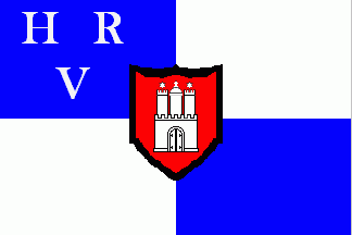 The flag was more or less the current flag of RG Hansa, but in the upper hoist corner were white initials "HR" (1st line) and "V" (2nd line).
