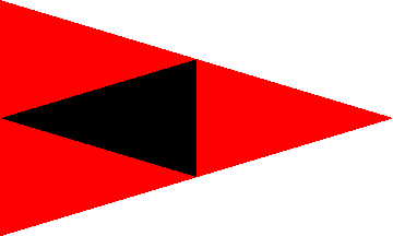 Red pennant with in the centre a red triangle pointing to the hoist, touching all three sides.
