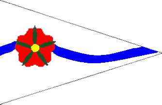 It is a white pennant, divided by a blue fessy wavy line superimposed by a red rose. The rose is taken from the coat of arms of the Lords of Lippe and the line is symbolizing the river Lippe.