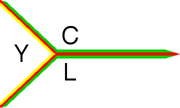 White pennant divided by a horizontal yellow-red-green ""Y"". Letters "Y", "C", "L" in black in the three triangles in which the "Y" divides the pennant.