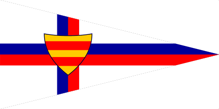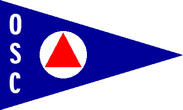 Blue pennant with a white disc charged with a red triangle placed in the middle of the flag and the letters "OSC" in white placed vertically along the hoist.