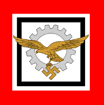 A square white flag with a thin white-black border, with in turn a broader red border. At the center a gray cog wheel on which a gold Luftwaffe eagle is superimposed, its wings reaching beyond the inner edge of the red border. Illustrated in Flaggenbuch 1939, pl. VII (after 1940), Davis 1975, p. 142 and [Roger James] Bender, The Luftwaffe, p. 289.