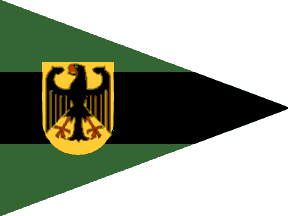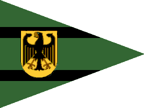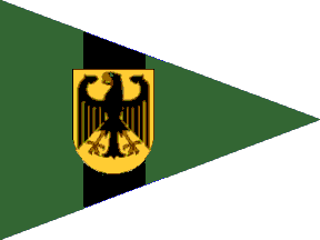 Green pennant with two horizontal black stripes and the national arms on the center. Source: Schnell and Seidel 1983.