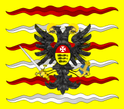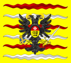 Colonel's Flag: white, above black double eagle with crown, sword and globus cruciger as usual, the sword near the pole on both sides, coat of arms on the breast in two parts: above red with white cross, underneath yellow with 3 black leopards.