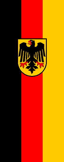 In the Anordnung über die deutschen Flaggen (Instruction on the German Flags) of 13th November 1996, published in the Bundesgesetzblatt I 1996, p. 1729, there is also for the first time legally prescribed a hanging flag (Banner) version of the Bundesdienstflagge. The image I made is in proportion 5:2, as this is the most frequently found proportion for hanging flags in Germany. Sources: Laitenberger and Bassier 2000, Friedel 1968 and Bundesministerium des Innern 1956.
