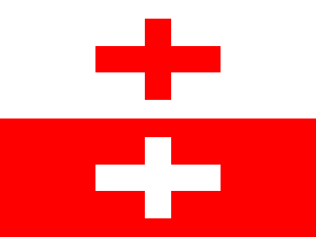 White-red bicolor with crosses in opposite color (i.e. counterchanged) in each field, cross bars slightly larger than the vertical ones.
