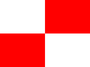 Divided quarterly white and red.