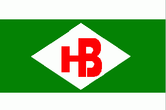 The company was located in Hamburg. It is a white over green over white horizontal triband with ratio approx 1:3:1 and a red capitals "HB" in a white lozenge in the centre, the "B" being clearly higher.