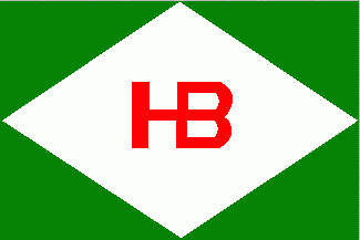 Brown 1971 shows a different version with a green flag having the diamond throughout and the red "HB" as normal letters with no break at the bottom of the "B" .