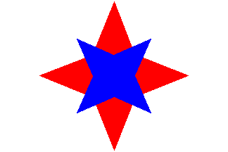 Fairplay Tugs or Fairplay Schleppdampfschiffs-Reederei GmbH - White with a centred device consisting of a large red four-pointed star charged with a smaller blue 4-pointed star, rotated 45 degrees relative to the larger one.