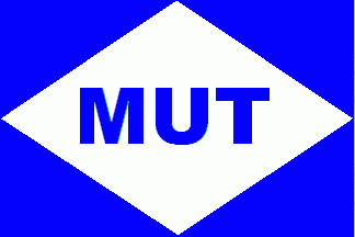 A flagoid until further notice, the company emblem of the Dettmer related MUT company at Magdeburg is a blue rectangle with a white lozenge bearing blue initials 'MUT' - the same basic form as Dettmer's house flag, but not, I suppose, flown on waterways - possibly on buildings. Real flag or not, in any case it is the symbol of 'Magdeburger Umschlag und Tanklager KG -Dettmer GmbH & Co.' (i.e. Magdeburg Reloading and Fuel Depot…).
